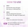 Uzlieciet masku uz tīras sejas ādas un noņemiet pēc aptuveni 40 minūtēm, kad tā kļūst caurspīdīga un sāk nožūt.